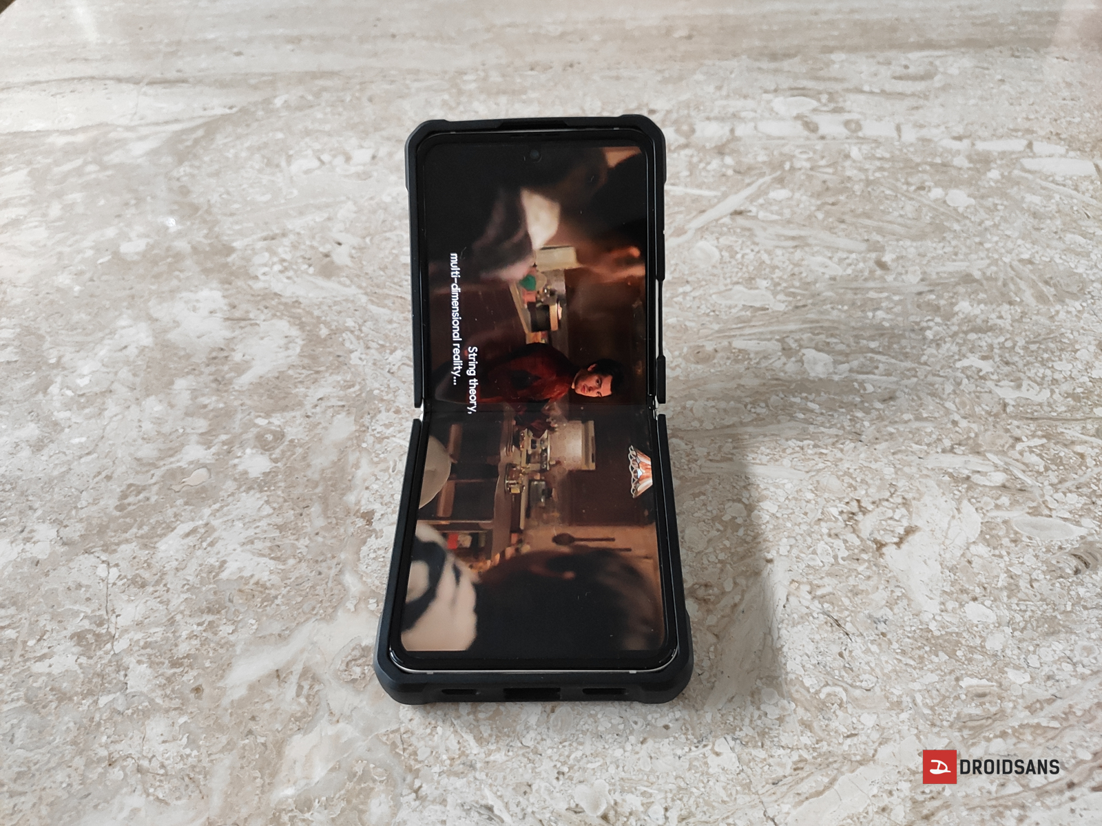 ส่วนตัวเป็นคนที่ชอบเสพคอนเทนต์วิดีโอ YouTube แบบแนวตั้ง เพราะมันดูไปด้วยไล่อ่านคอนเมนต์ไปด้วยได้ ซึ่งจอพับแบบนี้ก็ออกแบบมาให้ถูกฉะโหลกกับเราซะเหลือเกิน ช่วยให้ตั้งดูไปด้วยกินข้าวไปด้วยได้ หรือเวลาดูวิดีโอสอนทำอาหารแล้วทำตามไปด้วยอันนี้ก็เวิร์คมาก ๆ ไม่ต้องหาแก้วน้ำอะไรมาเป็นที่พิงอีกแล้ว แถมมี Flex Mode แบ่งส่วนทั้งครึ่งจอให้เป็นวิดีโอทั้งหมด เวลาอ่านซับก็ใหญ่เต็มจอมากขึ้น