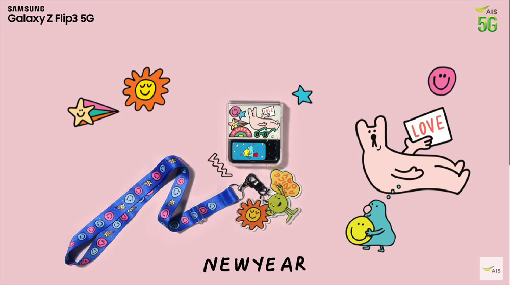 Samsung และ AIS ได้จัด Limited Boxset ให้กับแฟนๆ ของ Galaxy Z Flip 3 โดยจับมือกับ 5 ศิลปิน เพื่อฉลองเทศกาลปีใหม่ ออกมาเป็น My Flip ID Edition ที่มาพร้อมกับชุดสติ๊กเกอร์และลายวอลเปเปอร์สำหรับแต่งเครื่องได้ ตามสไตล์เรา