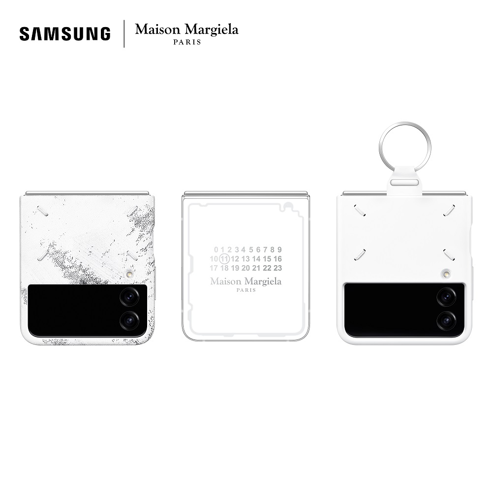 Samsung Galaxy Z Flip4 รุ่นพิเศษ Maison Margiela Edition มาในดีไซน์ที่ตรงตามลายเซ็น และแทบจะยกจุดเด่นทุกอย่างของแบรนด์แฟชั่นฝรั่งเศสมาไว้บนมือถือ ตัวเครื่องมีสีขาวด้าน พร้อมขอบเฟรมสีขาวเงินขัดด้านดูหรู กระจกด้านหลังตัวเครื่องมีลายเส้นสีเทาวัสดุโปร่งแสงที่ล้อลายแผงวงจรด้านในตัวเครื่อง พร้อมพิมพ์โลโก้แบรนด์ และตัวเลขที่เป็นสัญลักษณ์ของ Maison Margiela ด้วย