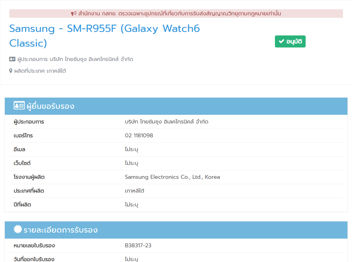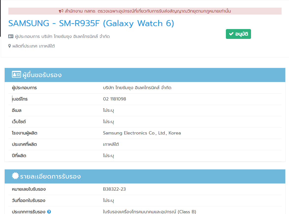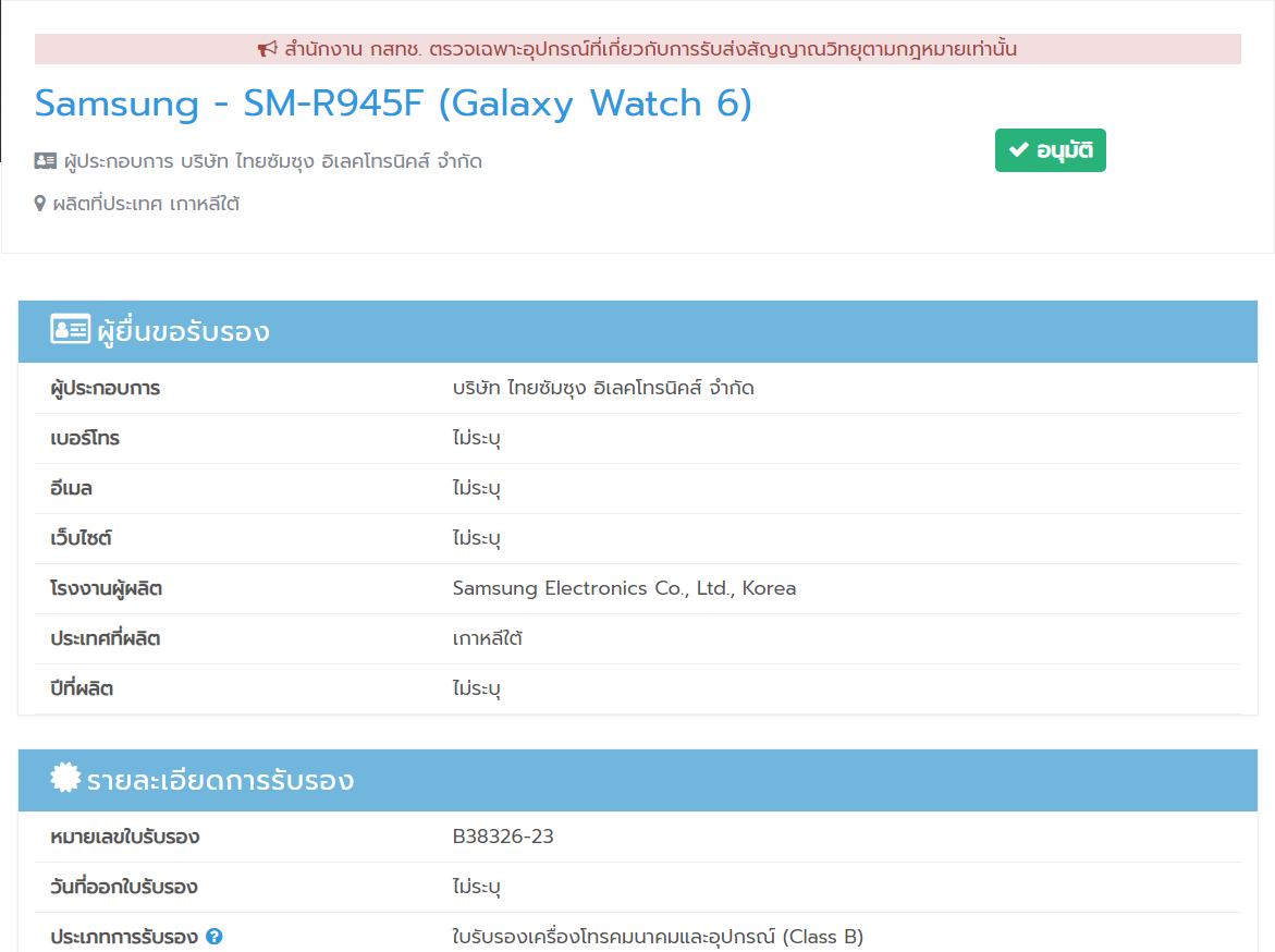 ด้านนาฬิกาอัจฉริยะอย่าง Galaxy Watch6 ตอนนี้ก็มีรุ่น 4G หน้าปัด 35มม. (SM-R935F) และ 44มม. (SM-R945F) อยู่บนฐานข้อมูลแล้ว ส่วนรุ่น Watch6 Classic (SM-R955F) ก็ผ่าน กสทช. มาแล้วเช่นกัน Galaxy Watch6 Series ทุกรุ่นจะได้รับการอัปเกรดจอให้ใหญ่ขึ้นกว่าเดิม 20% ขอบจอลดลงถึง 30% เลยทีเดียว