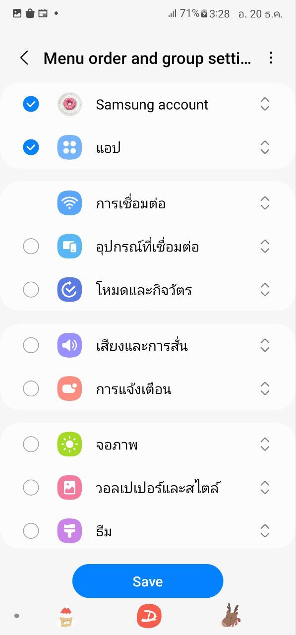 ปกติหน้าเมนูมือถือที่ใช้ตั้งค่าก็จะมีลำดับเรียงเอาไว้ แต่ด้วยโมดูลนี้ สามารถกดเข้ามาเรียงหน้าใหม่ได้ ใครชอบตั้งค่าเมนูไหนบ่อยก็กดค้างแล้วลากขึ้นลงได้เลย แถมถ้าไม่ต้องการเห็นหน้าเมนูไหน ก็ไปติ๊กออกตรงด้านซ้ายได้ด้วย