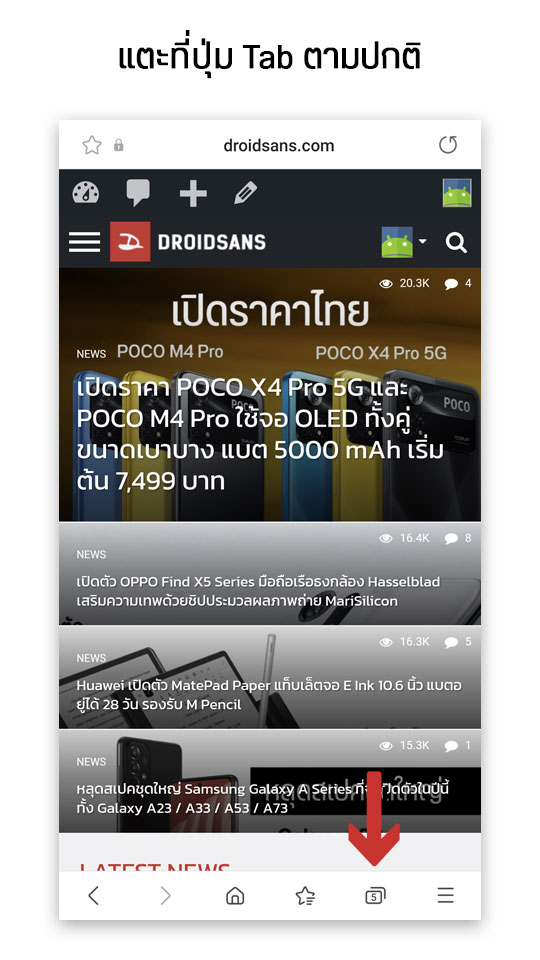 - แตะปุ่ม Tab บริเวณด้านล่างตามปกติ