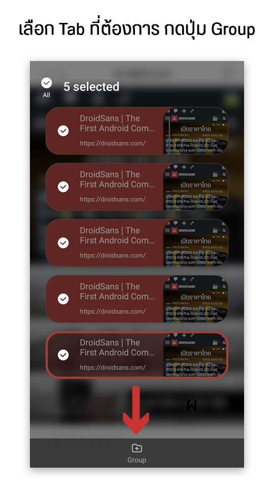 - เมื่อเข้าสู่หน้ารวม Tab แล้ว ตรงนี้สามารถใช้ฟีเจอร์ Tab grop ได้ 2 วิธี