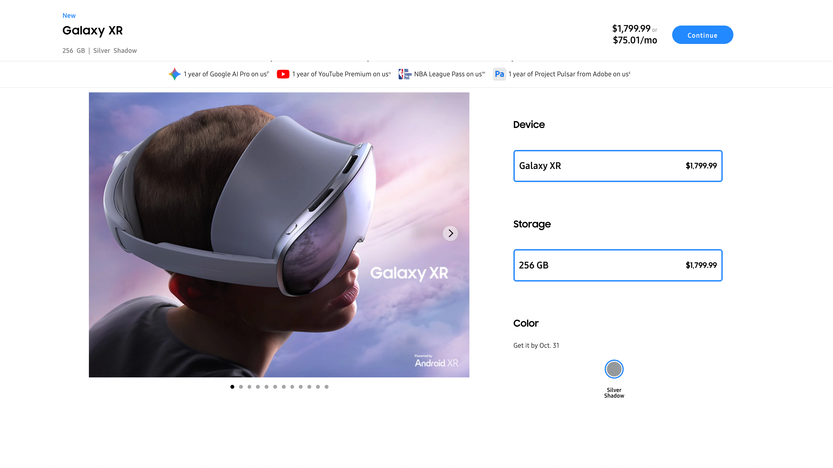 Galaxy XR วางจำหน่ายในราคา 1,799 ดอลลาร์สหรัฐ (ประมาณ 59,999 บาท) เริ่มวางขายแล้วตั้งแต่วันนี้ในประเทศสหรัฐอเมริกา และประเทศเกาหลีใต้
