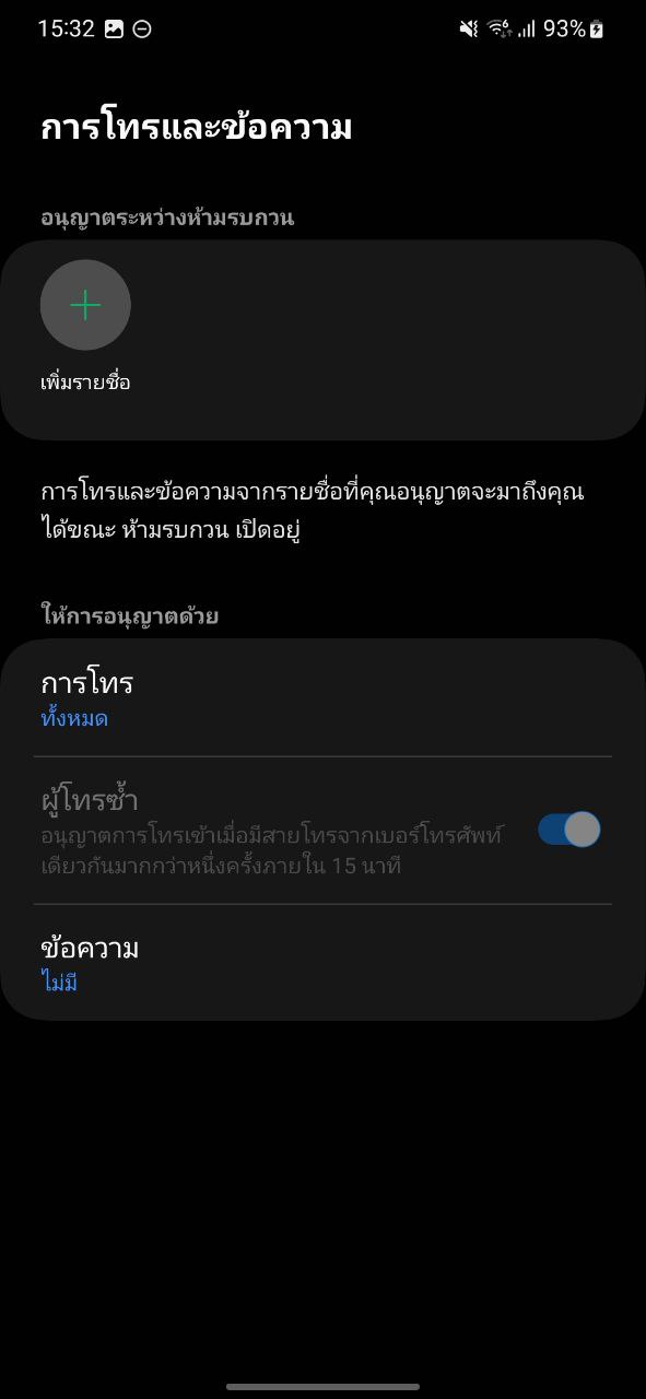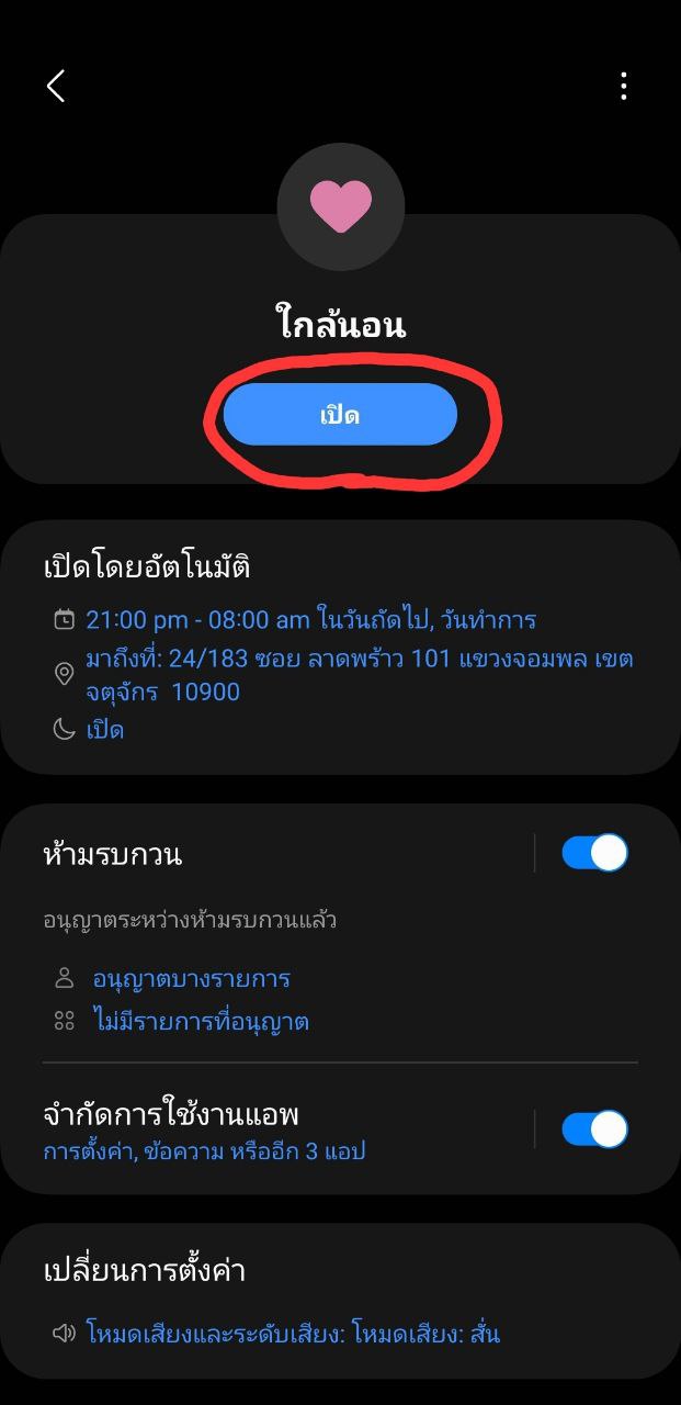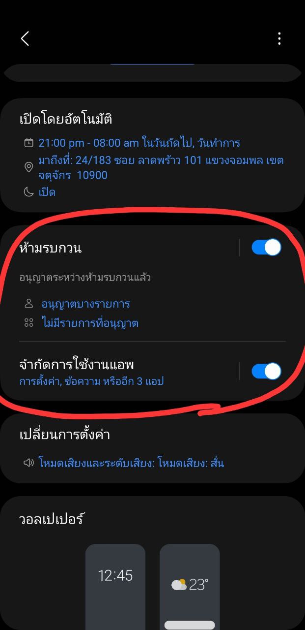 กลับมาหน้าหลักจะมีเมนูถามว่าจะเปิดโหมดห้ามรบกวนด้วยหรือไม่ ตรงนี้เปิดแล้วเลือกได้ว่าจะมีคอนแท็กไหนติดต่อเราได้อยู่ เผื่อมีคนสำคัญโทรมา อีกแท็บคือ จำกัดการใช้งานแอป ก็จะมีให้เราเลือกว่ามีแอปไหนที่ส่งแจ้งเตือนให้เราได้บ้าง