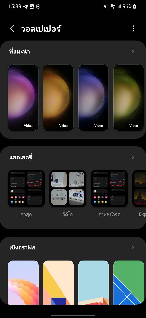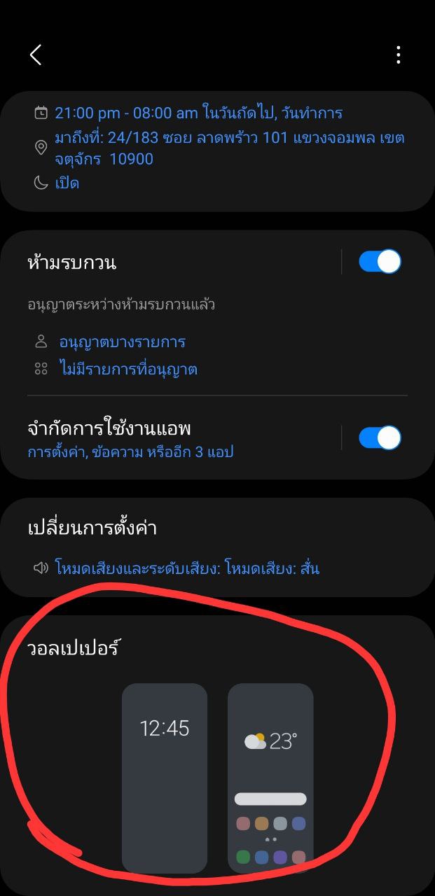 กลับมาหน้าหลักจะมีเมนูสุดท้าย คือเลือกวอลเปเปอร์ได้ ก็เลือกภาพหน้าจอล็อกหรือจอหลักได้ตามใจชอบ อย่างเป็นตอนกลางคืนก็ตั้งเป็นสีมืด ๆ จะได้ไม่แสบตา แต่ถ้าไม่ตั้งอะไรเลยก็จะใช้วอลเปเปอร์ที่เราตั้งไว้ตามปกติ