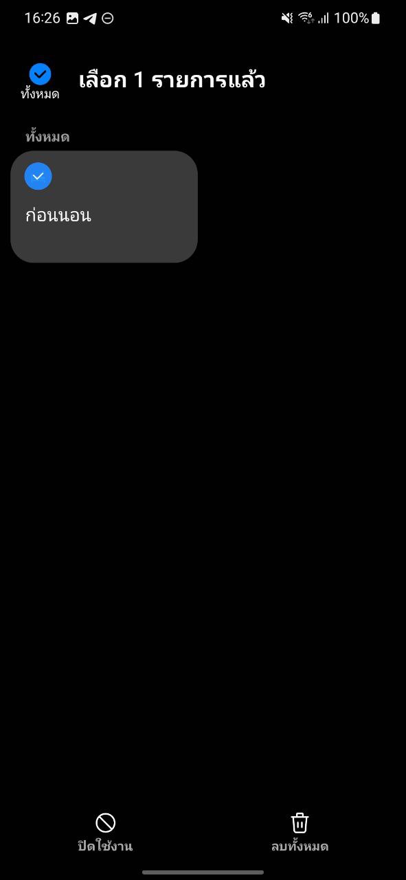 จากนั้นกดบันทึก ก็จะขึ้นหน้าให้เราสร้างชื่อ เลือกไอคอนสำหรับกิจวัตร เสร็จแล้วก็จะถูกสร้างขึ้นมาในหน้าหลัก และถือว่าเราเปิดใช้กิจวัตรเรียบร้อย ถ้าจะปิดก็ให้กดค้างแล้วเลือก ปิดใช้งาน