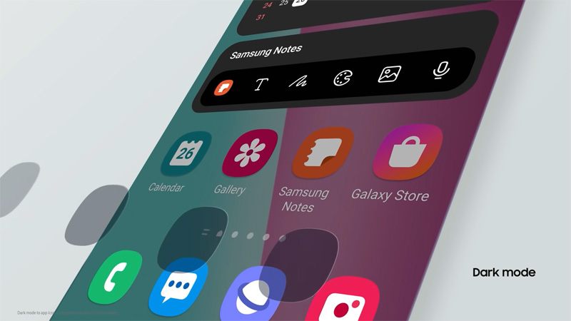 - เมื่อเปิดใช้งานโหมดมืด คราวนี้ในหน้าจอโฮมจะมีการปรับไอคอนของแอปให้มืดลงตามไปด้วย จากเดิมที่มีการปรับแค่วอลเปเปอร์กับวิดเจ็ตบางตัวที่รองรับ
