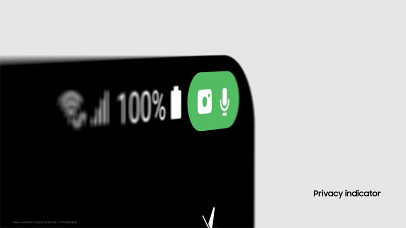 - เมื่อกล้องหรือไมโครโฟนถูกเรียกใช้งานจะมีไอคอนปรากฏที่มุมขวาบน โดยผู้ใช้งานสามารถแตะที่ไอคอนดังกล่าวเพื่อกำหนดสิทธิ์ในการเข้าถึงของแอปต่าง ๆ ได้ทันทีจากตรงนี้อีกด้วย