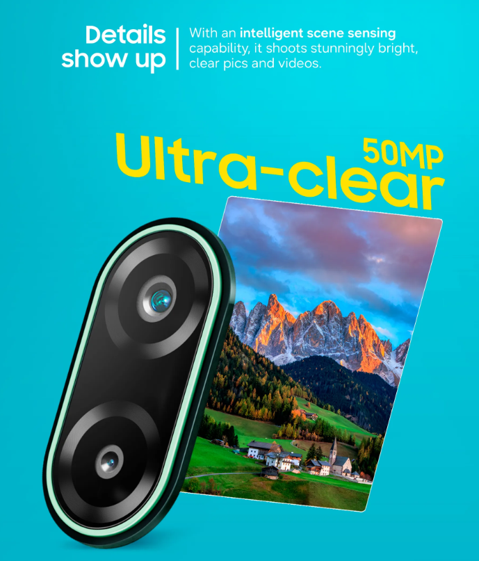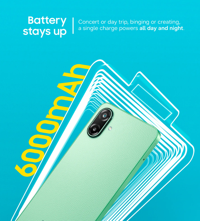 กล้องหน้า 8MP หน้าจอความสว่าง 800 นิต รีเฟรชเรต 120Hz แบตเตอรี่ 6,000mAh ใช้งานได้ยาวนาน ชิปเซ็ตคาดว่าเลือกใช้เป็น MediaTek Dimensity 6300 และระบบชาร์จเร็ว 25W