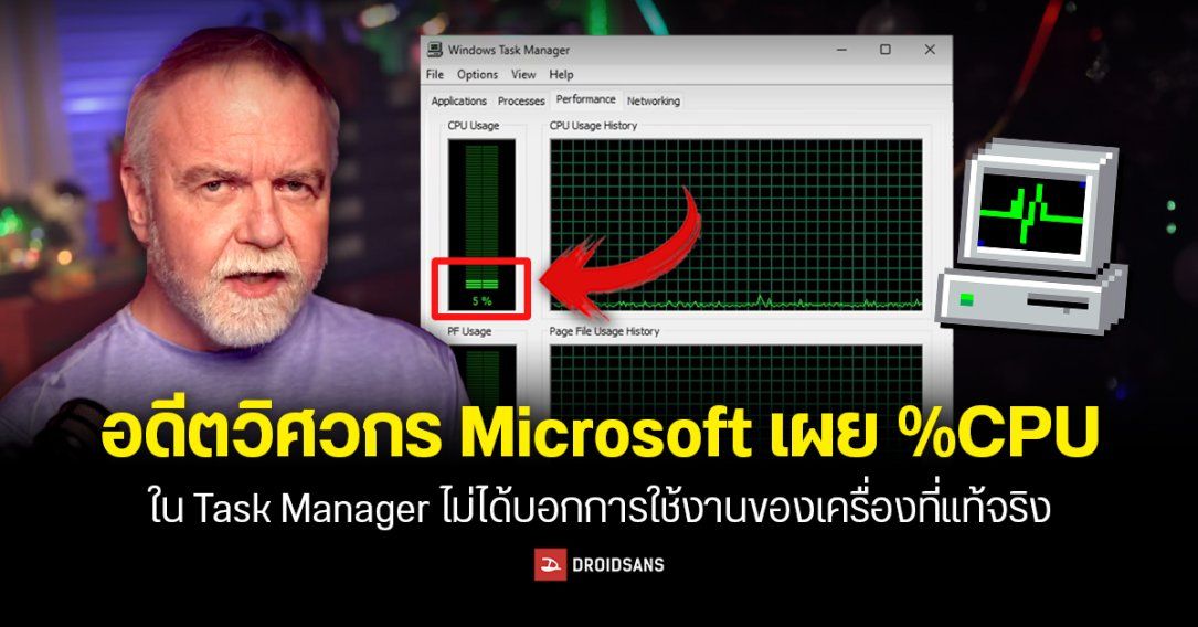 Dave Plummer อดีตวิศวกร Microsoft และผู้สร้าง Task Manager ออกมาอธิบายว่า ทำไมตัวเลขเปอร์เซ็นการใช้งาน CPU ที่เราเห็นใน Task Manager นั้นบางครั้งไม่ตรงกับความรู้สึกที่เราใช้งาน เช่นมีโหลดแค่ 20% แต่เครื่องช้ามาก ตัวเลขพวกนี้กำลังหลอกเราหรือไม่