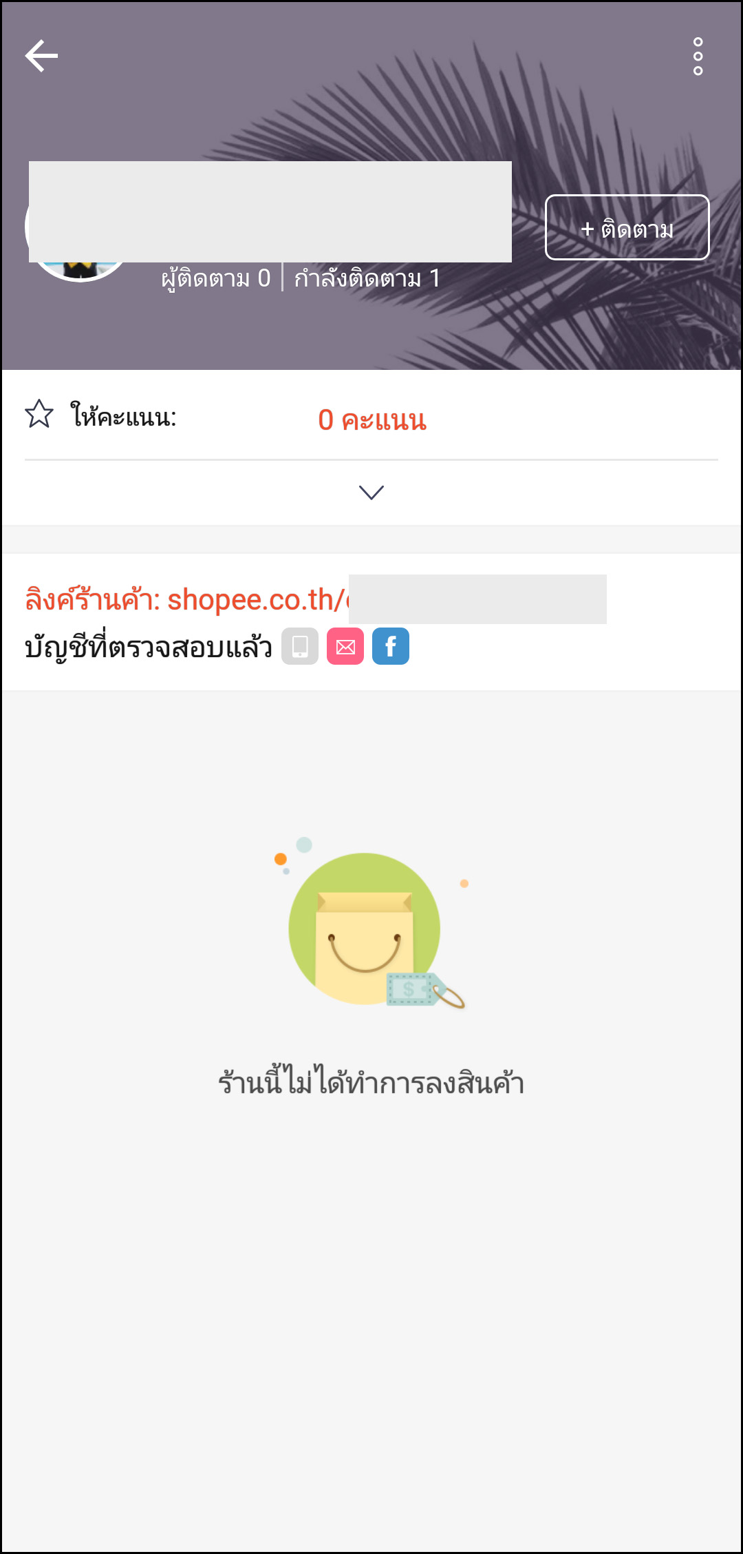 บัญชีของเพื่อนที่เชื่อม Facebook กับ Shopee // หน้าโปรไฟล์คนที่เราเข้ามาดู