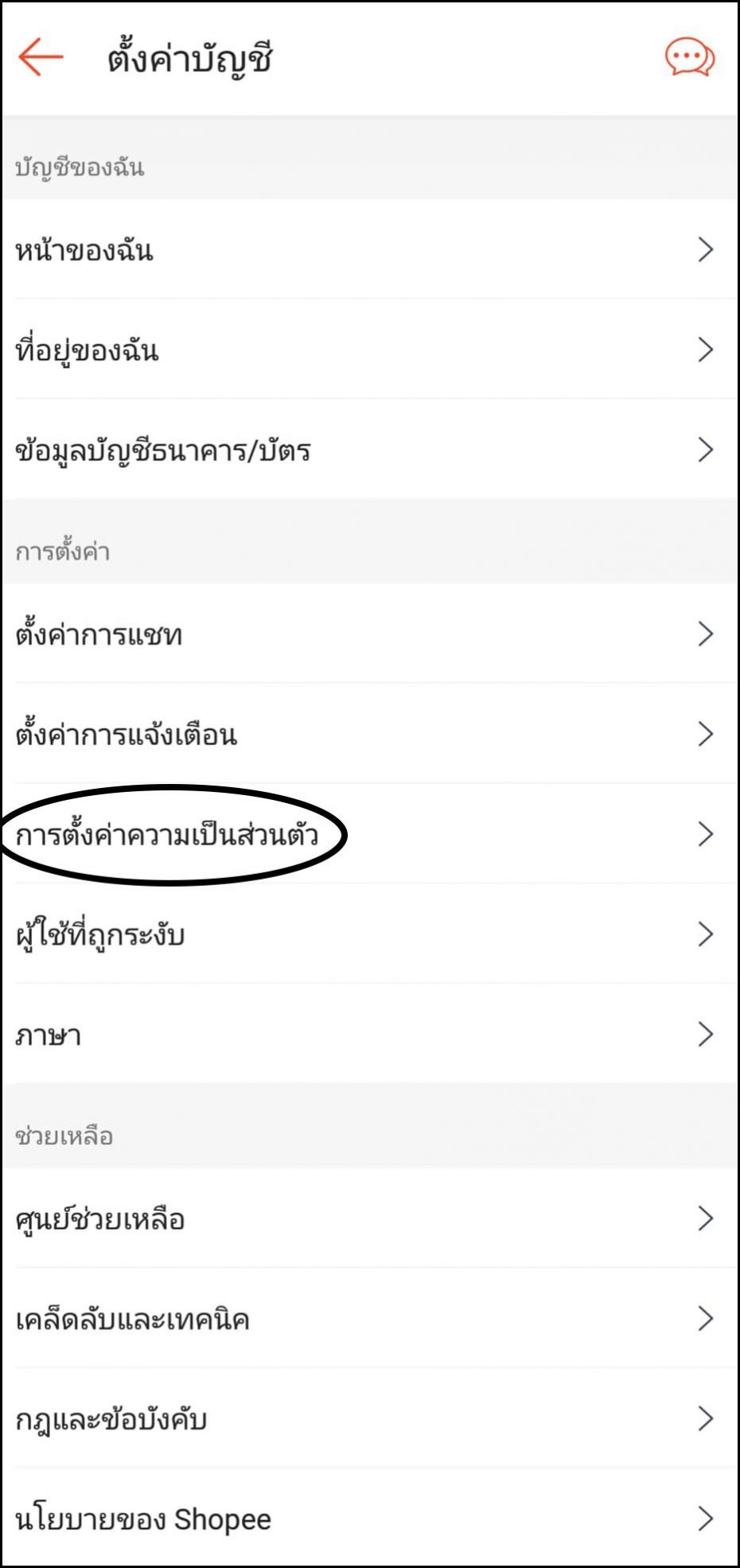 - กดที่ “การตั้งค่าความเป็นส่วนตัว”