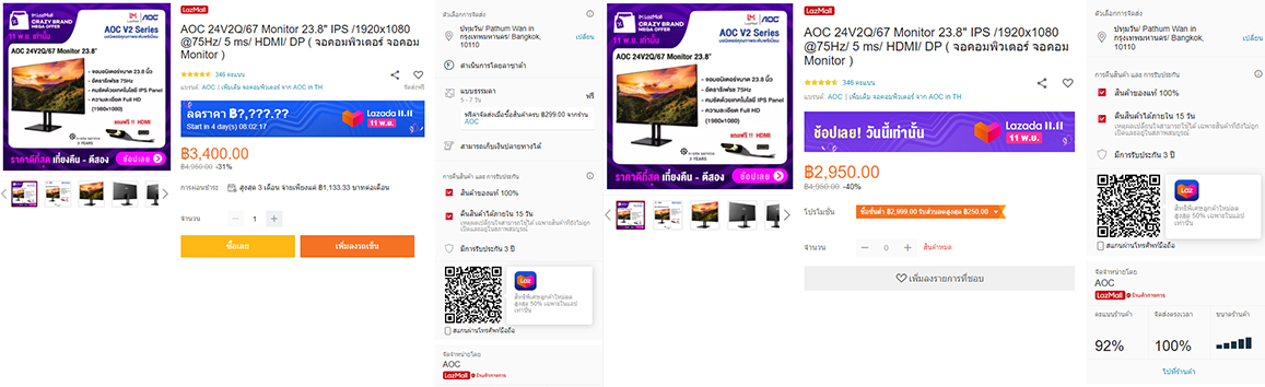 | จอ AOC 24V2Q/67 | 3,400 | 2,950 | 450 | 15.3% |