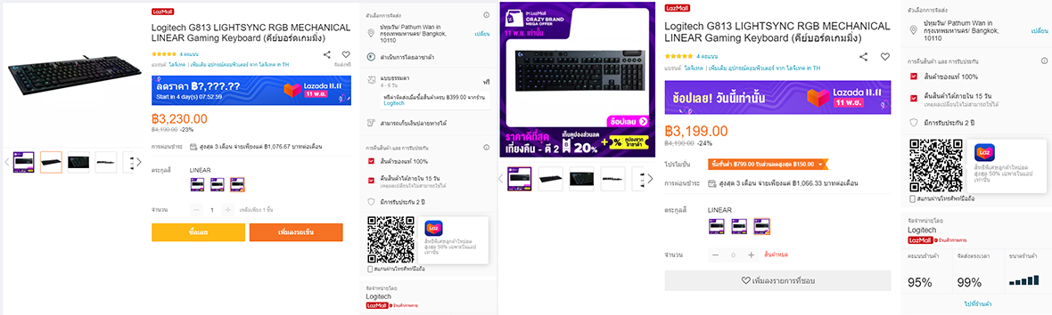 | คีย์บอร์ด Logitech G813 | 3,230 | 3,199 | 31 | 1% |