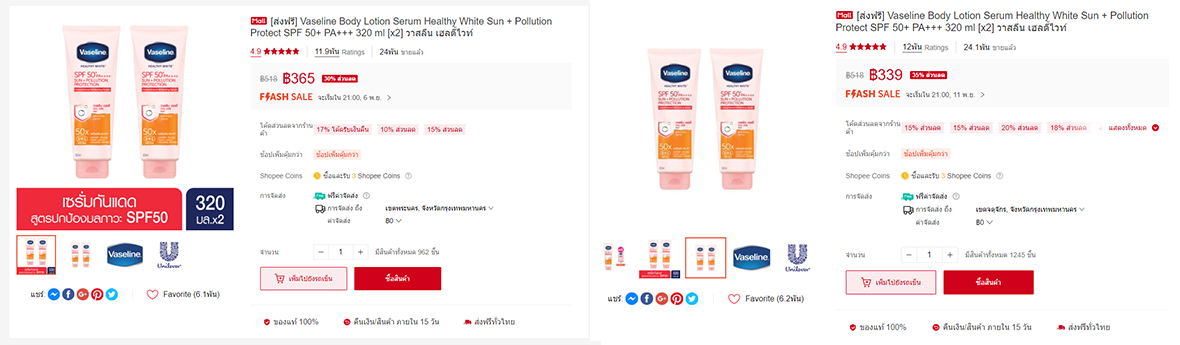 | ครีม Vaseline | 365 | 339 | 26 | 7.7% |