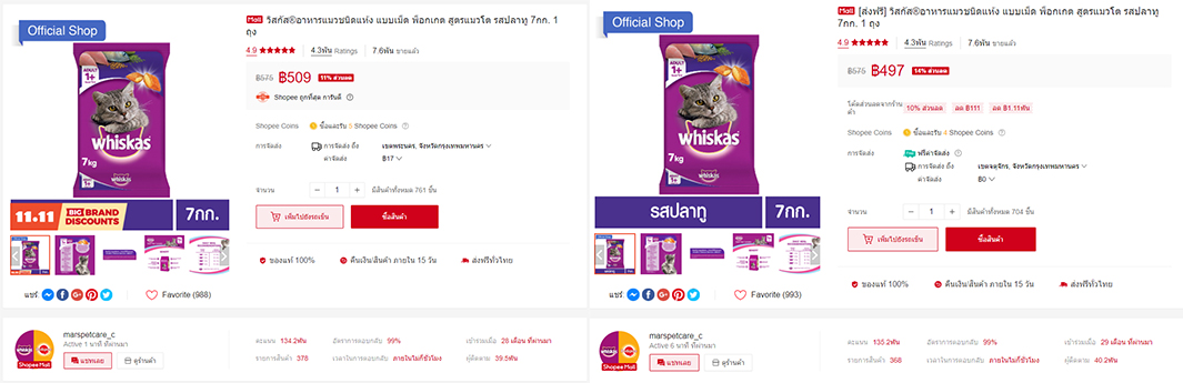 | อาหารแมว Whiskas | 509 | 497 | 12 | 2.4% |