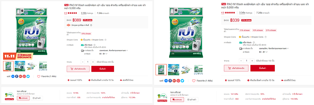 - กดแคปราคาสินค้าแบบสุ่มจากหลาย ๆ ร้านทั้งหมด 10 ชิ้น ตอนวันที่ 4-7 พฤศจิกายน 2563 ทั้ง Lazada และ Shopee