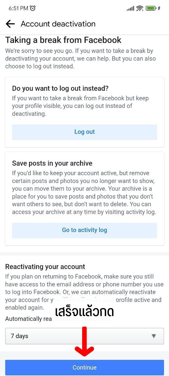 ตอนนี้ก็จะถือว่าบัญชีของเราถูกปิดลงอย่างชั่วคราวแล้ว แล้วถ้าเราอยากกลับมาเปิดบัญชีเมื่อไร ก็เพียงกดลงชื่อเข้าใช้ตามปกติ ก็จะได้บัญชีคืนมาแล้ว ง่าย ๆ เท่านี้เอง