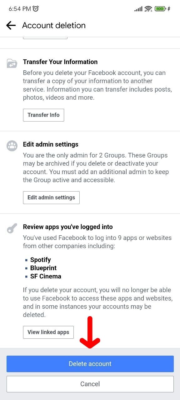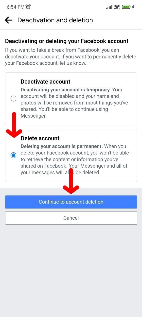 มันก็จะพามาหน้าให้เราตรวจเช็คความเรียบร้อย ดาวน์โหลดข้อมูลเก็บไว้ จัดการเพจและกลุ่มต่าง ๆ ถ้าเราโอเคแล้วก็กด Delete Account > ใส่รหัสพาสเวิร์ด แล้วกด Continue > ขึ้นหน้าเตือนครั้งสุดท้าย กด Delete account ก็จะเป็นการลบบัญชีครับ