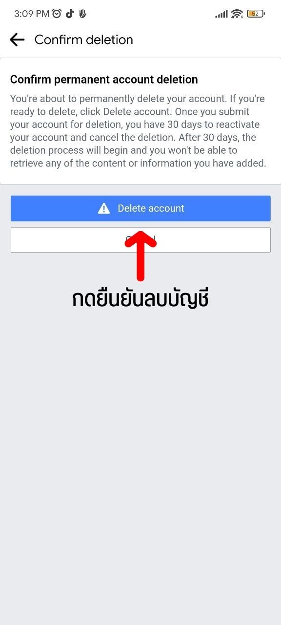 ฃึ่งถึงจะกดลบถาวรไป แต่สำหรับใครที่อาจเปลี่ยนใจกลับมาใช้บัญชีนี้ก็ยังสามารถกู้บัญชีคืนได้ง่าย ๆ เพียงแค่กดลงชื่อเข้าใช้บัญชีตามเดิมภายใน 30 วัน ถ้าเกินจากนั้นข้อมูลทุกอย่างจะหายไปตลอดกาลครับ