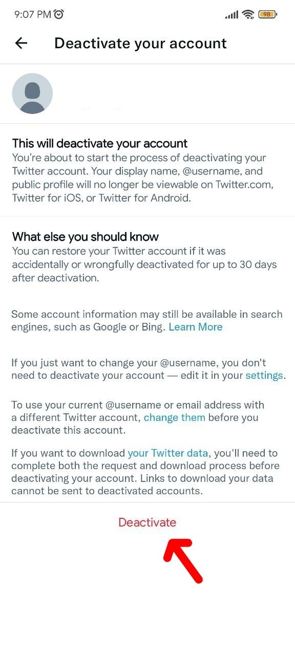 โดย Twitter จะเก็บข้อมูลบัญชีเราไว้นานถึง 30 วัน ถ้าเราเปลี่ยนใจ ต้องการเปิดใช้บัญชีก็ทำได้ง่าย ๆ เพียงแค่กดลงชื่อเข้าใช้ไปใหม่ครับ แต่ถ้าปล่อยทิ้งไว้นานเกิน 30 วันก็จะเป็นการลบบัญชีออกไปถาวรเลย
