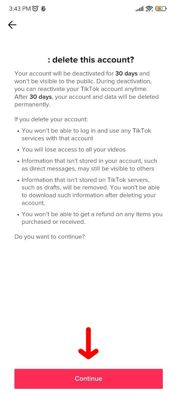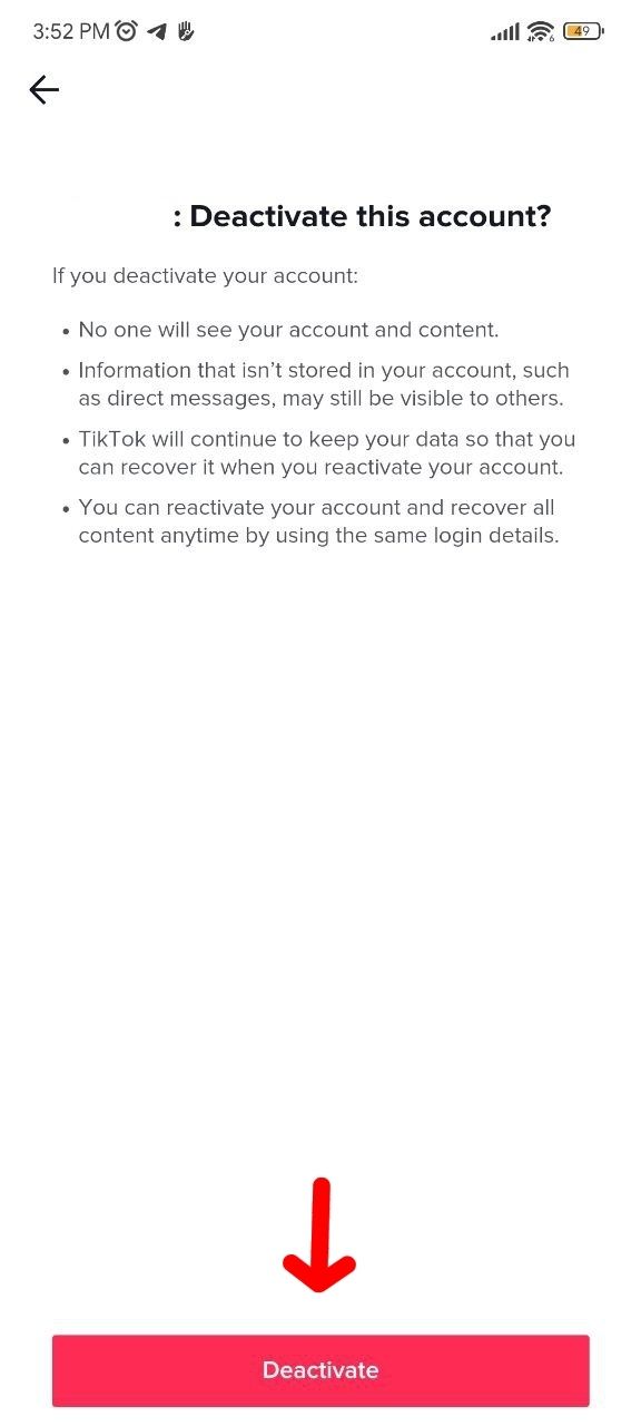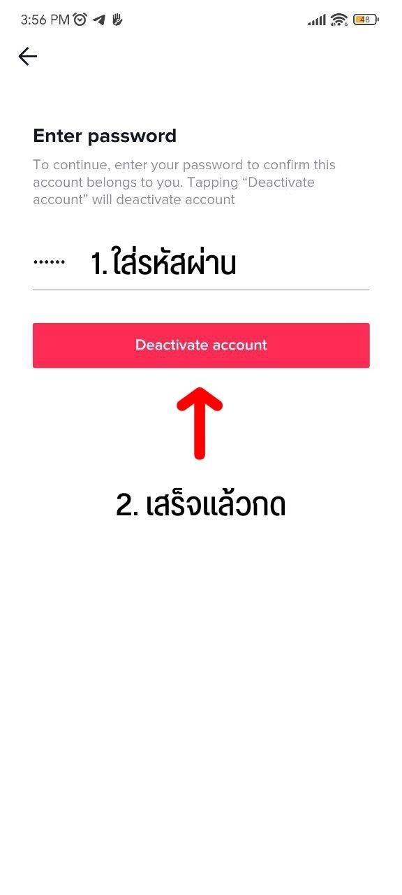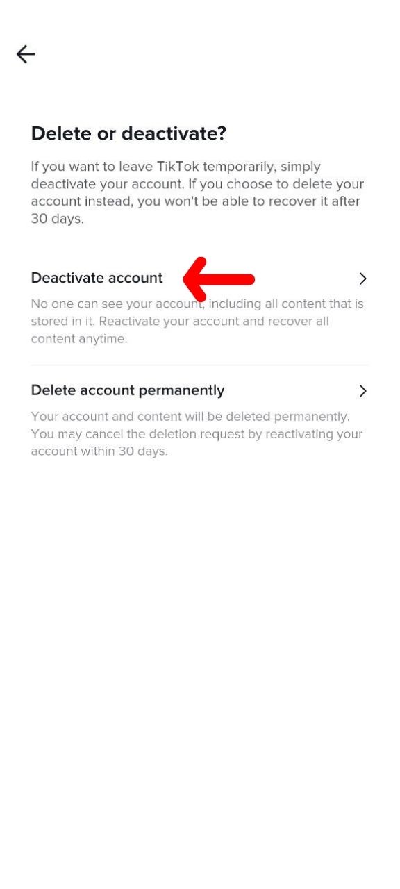ใครต้องการพักให้ห่างไปจาก Tiktok เพียงสักพัก ก็เลือกปิดบัญชีไปแบบชั่วคราวได้ครับ ทำได้โดยไปในหน้าเลือกรูปแบบการลบบัญชี แล้วกดเลือก Deactivate account > กด Deactivate > ใส่รหัสผ่านเสร็จแล้วกด Deactivate account เป็นครั้งสุดท้าย เป็นอันเรียบร้อย