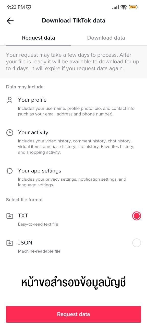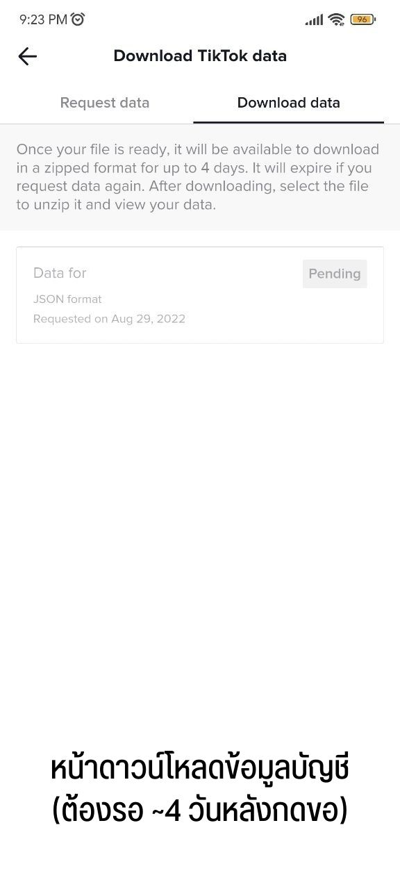 จากนั้นจะขึ้นหน้าให้เรากดขอสำรองข้อมูลครับ ใครจะเก็บข้อมูลก็กด Request download > แล้วก็กด Request Data ซึ่งตรงนี้กดขอไปอาจต้องรอนานถึง 4 วันถึงจะมีปุ่มให้กดดาวน์โหลดได้นะ