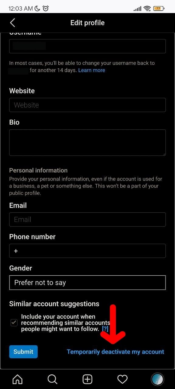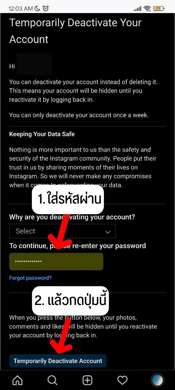 ลบบัญชี Instagram แบบชั่วคราว (Tempolarily Deactivate Account)