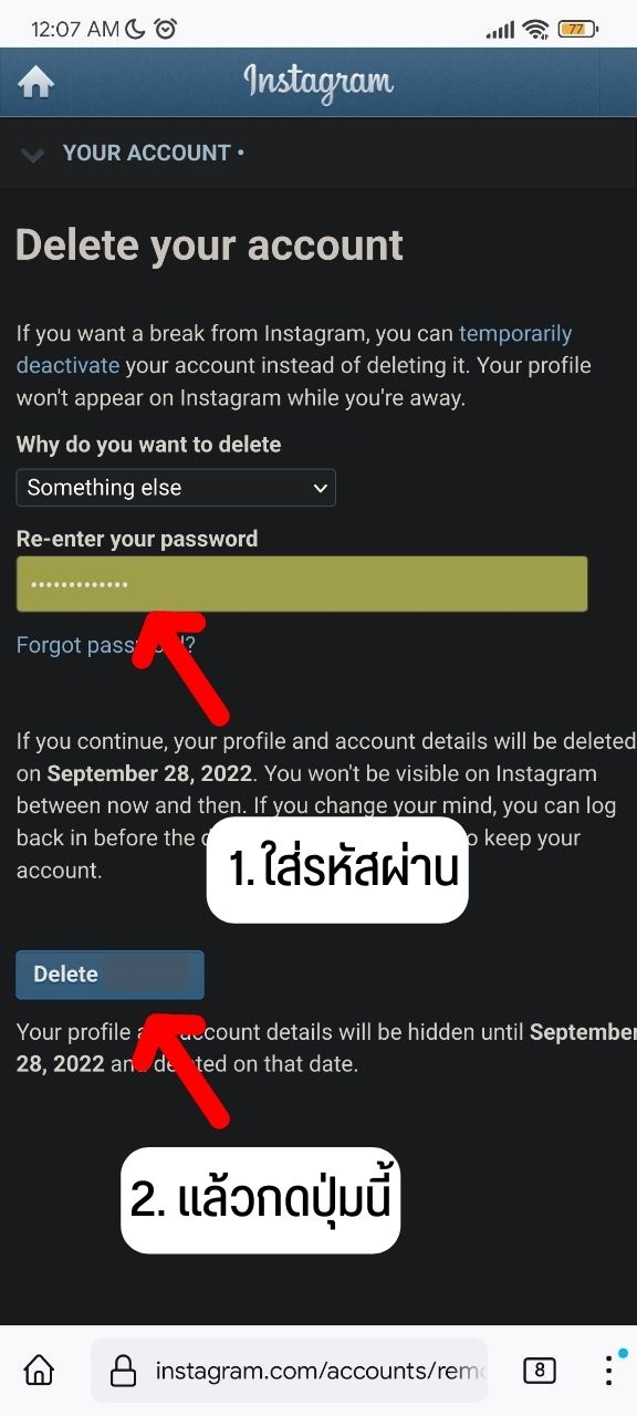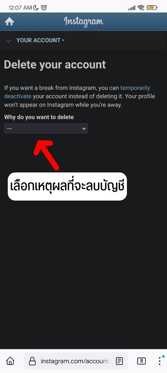 ลบบัญชี Instagram แบบถาวร (Delete Account)