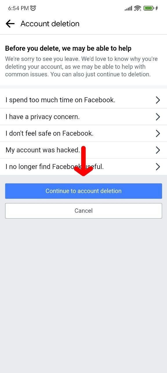 หากไม่อยากเล่นเฟซอีกต่อไป ให้กดเลือกเป็น Delete account แทนแล้วกด Continue to account deletion > ใส่เหตุผลที่จะลบแล้วกด Continue