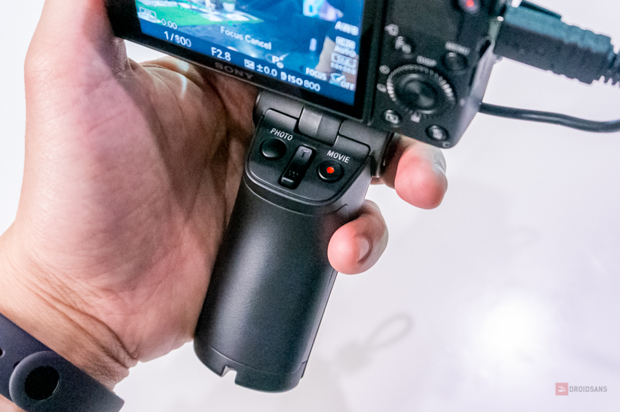 อารมณ์การถ่ายภาพจะเหมือนใช้มือถือถ่ายไม่มีกริบจับเหมือนตัวบอดี้รุ่นพี่ อาจจะจับไม่ค่อยเข้ามือเท่าไร ส่วนตัว Shooting Grip Kit ขนาดค่อนข้างเล็ก มีปุ่มถ่ายรูป + ซูมเข้าออก + ถ่ายวิดีโอ สามารถต่อรางใส่อุปกรณ์เสริมอื่นๆ เพิ่มได้