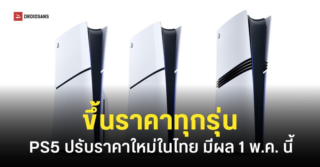 ไทยก็ไม่รอด Sony ประกาศขึ้นราคา PlayStation 5 ทุกรุ่นอีกครั้ง โดยเริ่มมีผลตั้งแต่วันที่ 1 พฤษภาคม 2569 สำหรับรุ่น Standard ราคาใหม่เริ่มต้นอยู่ที่ 20,990 บาท