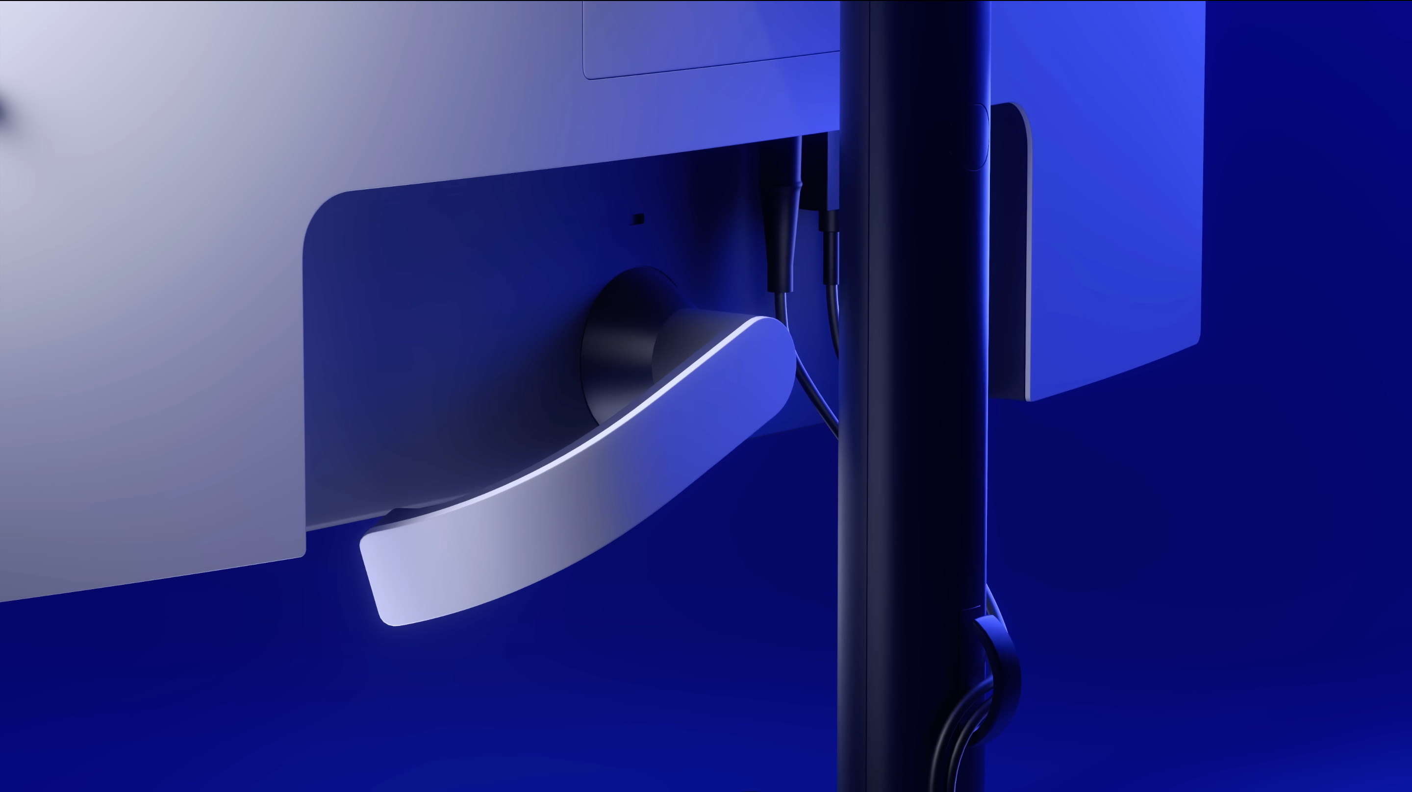 จุดเด่นของ 27” Gaming Monitor คือตัวขาบริเวณด้านหลังที่เราสามารถหมุนลงมาให้เป็นที่แขวนเพื่อชาร์จจอย DualSense ได้ในตัว รองรับการติดตั้งหน้าจอแบบ VESA Mount และพอร์ตเชื่อมต่อแบบครบชุด ได้แก่