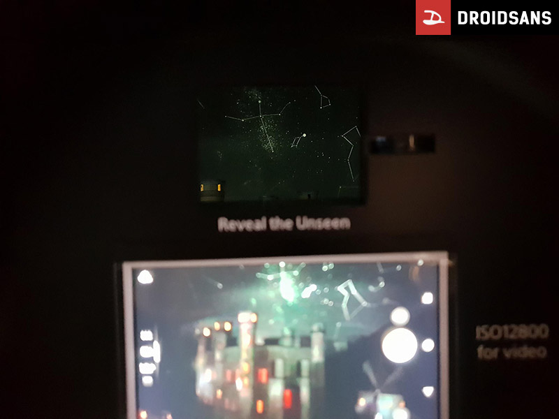 ภายในงานมีการโชว์การทำงานให้เห็น ภายในนั้นจะมีปราสาทจำลองพร้อมหมู่บ้านใกล้ๆ ลำธารน้ำจำลองที่ไหลอยู่ และกังหันลมที่หมุนอยู่ โซนี่ให้ผู้ชมบูธมองเข้าไปในพื้นที่มืดนั้น ซึ่งจะพบว่าแทบไม่เห็นอะไรเลย ในขณะที่กล้องมือถือธรรมดาจะเห็นรายละเอียดบ้าง