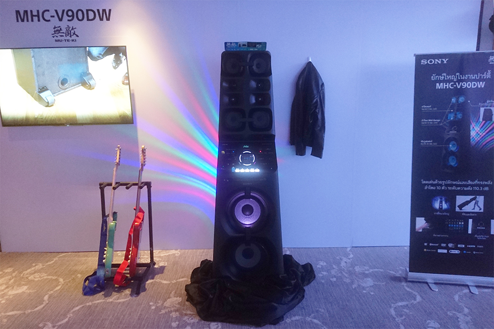 - MHC-V90DW เครื่องเสียงกำลังสูงที่ครบ จบสำหรับสายปาร์ตี้ เพราะมีทั้งลำโพงแบบแตร 10 ดอก มีไฟประกอบจังหวะเพลง, รองรับการ Cast ทั้งวิดีโอและเพลงไปเล่นบนตัวลำโพงได้