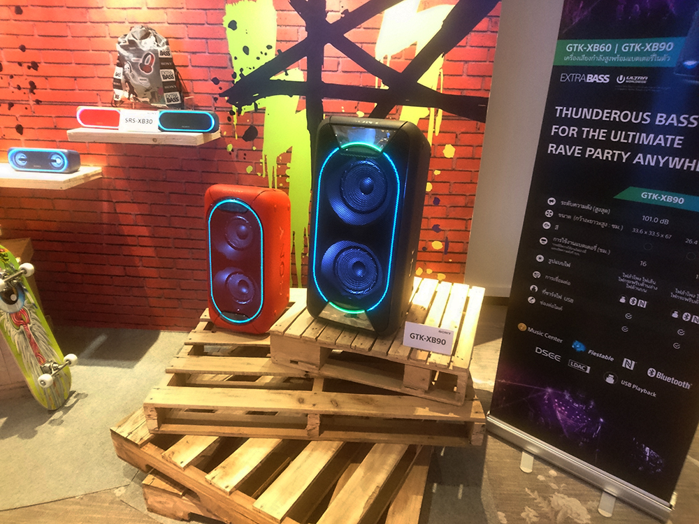 - GTK-XB90 ลำโพงพร้อมแบตฯ ในตัว รุ่นใหญ่จัดเต็มของ Extra Bass เพราะมี subwoofer 2 ตัว และทวีตเตอร์ 3 ตัว, วางขายในช่วงเดือนพฤศจิกายน ยังไม่ระบุราคาครับ