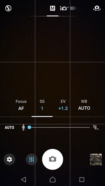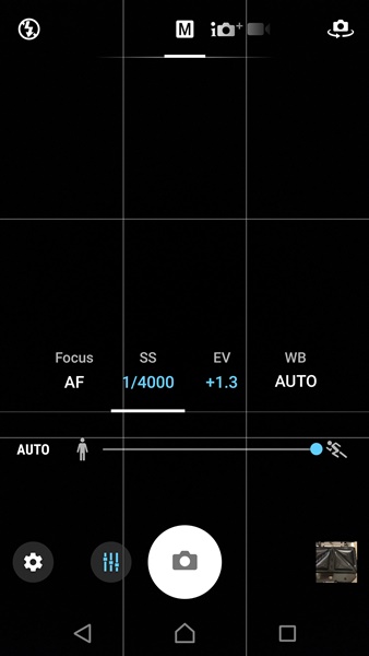 Manual Mode หรือโหมด Pro ก็มีมาให้เราสามารถปรับค่าต่างๆในการถ่ายรูปได้เองทั้ง Focus, Shutter speed, EV และ White balance โดย Shutter speed สามารถปรับได้ตั้งแต่ 1/4000 – 1 วินาที