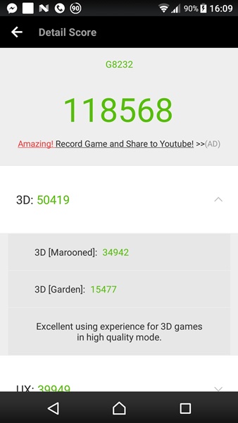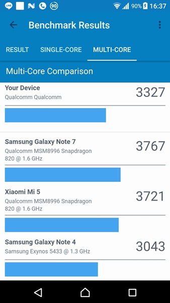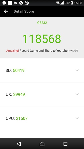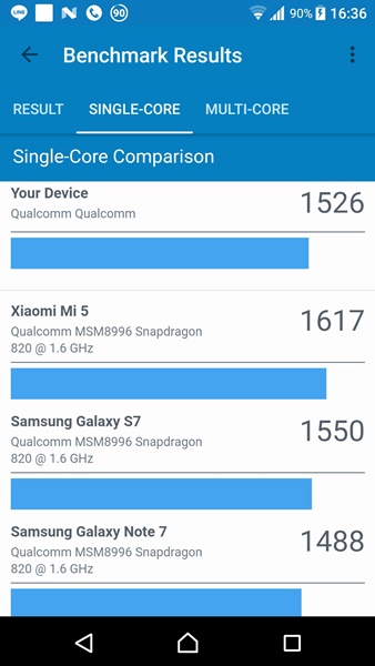 Xperia XZs ใช้ชิปเซต Qualcomm Snapdragon 820 และ GPU ยังคงเป็น Adreno 530 เหมือนกับ Xperia XZ แต่มีการเพิ่ม RAM เป็น 4GB ส่วน ROM ใหญ่ถึง 64GB ทีเดียว เรียกว่าเหลือเฟือสำหรับการใช้งานทั่วไปและการเล่นเกม สำหรับผลคะแนนทดสอบ benchmark ก็ได้ตามนี้