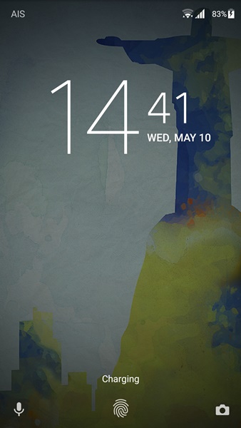 หน้าจอ Lockscreen ของมือถือ Sony นั้นมีเอกลักษณ์ของตัวเองอย่างหนึ่งคือ “นาฬิกา” ครับ และเป็นนาฬิกาที่สวยซะด้วย แอบเห็นมือถือยี่ห้ออื่นเอาไปใช้เหมือนกันนะ นอกจากนาฬิกาแล้วก็ไม่มีอะไรแตกต่างจาก Lockscreen ของ Android มาตรฐาน แต่มีกิมมิคเล็กๆ เวลาสแกนนิ้วเพื่อปลดล็อคหน้าจอ ตัว lockscreen จะเลื่อนไปทางขวาเหมือนเราเอานิ้วปัดเลย สวยดี
