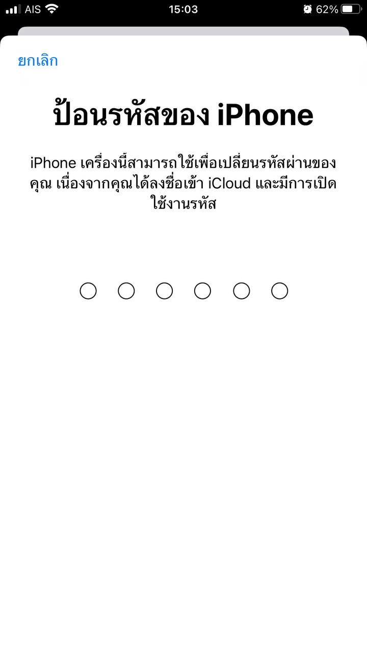 หลังป้อนรหัสเครื่องแล้ว ไปเปลี่ยนรหัสผ่าน Apple ID ได้ทันที