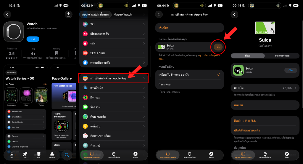 ขั้นตอนการเพิ่มบัตร Suica ลงใน Apple Watch สามารถทำได้ดังนี้