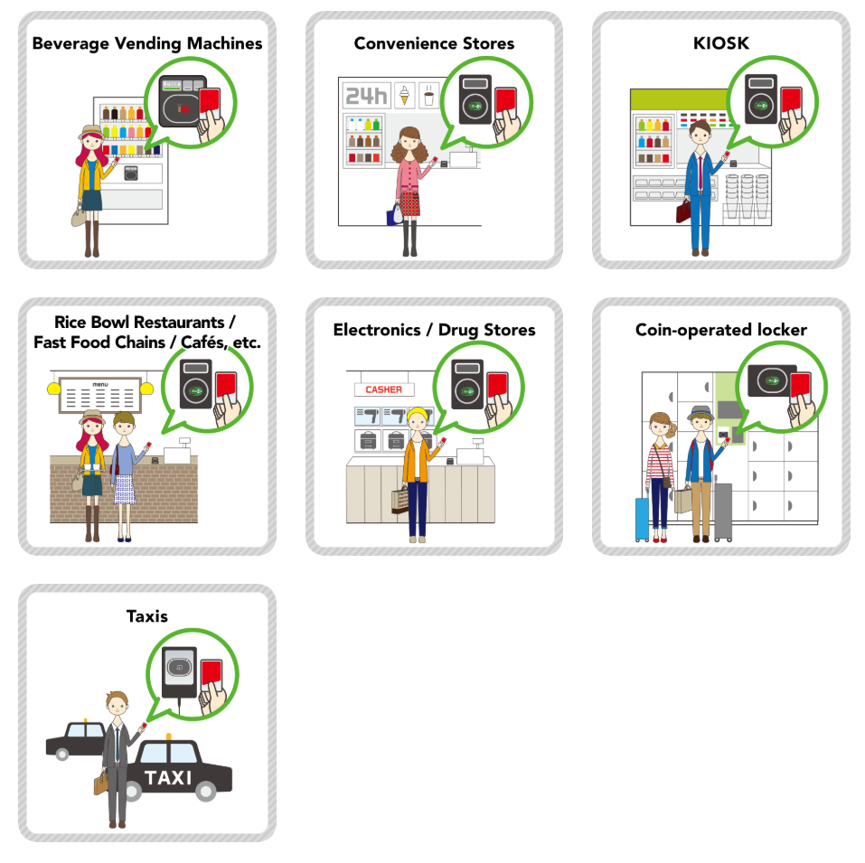 และความสะดวกไม่ได้หยุดแค่การขึ้นรถไฟเท่านั้น เพราะบัตรเหล่านี้ยังสามารถใช้ขึ้นรถเมล์ หรือจ่ายเงินตามร้านสะดวกซื้อ ตู้กดสินค้า และร้านค้าต่าง ๆ ได้อีกด้วย เรียกได้ว่าเป็นบัตรใบเดียวที่แทบจะใช้ได้ครบทุกอย่างในการใช้ชีวิตที่ญี่ปุ่น