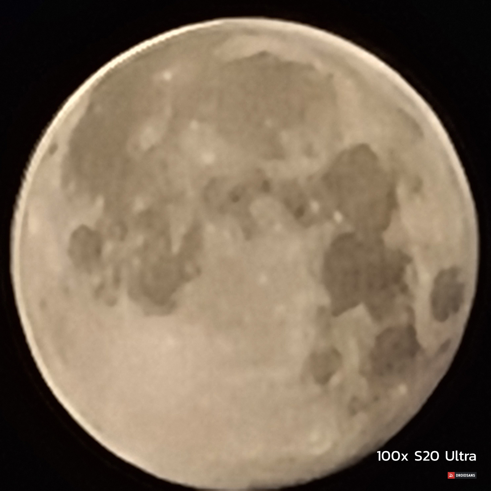 [ภาพเซ็ตนี้ถ่ายตอนตี 3]ที่ระยะนี้ก็จะเริ่มเห็นรายละเอียดขอพระจันทร์มากขึ้น การเก็บรายละเอียดและน๊อยส์ในภาพเป็นอย่างไร คือถ้ามองกันที่ลวดลายของพื้นผิว P40 Pro และ Find X2 Pro ถือว่าเก็บมาได้สูสี ส่วนของ S20 Ultra นั้นเหมือนจะโดนระบบจัดการน๊อยส์เกลี่ยภาพจนรายละเอียดเล็กๆ บนผิวดวงจันทร์หายไป