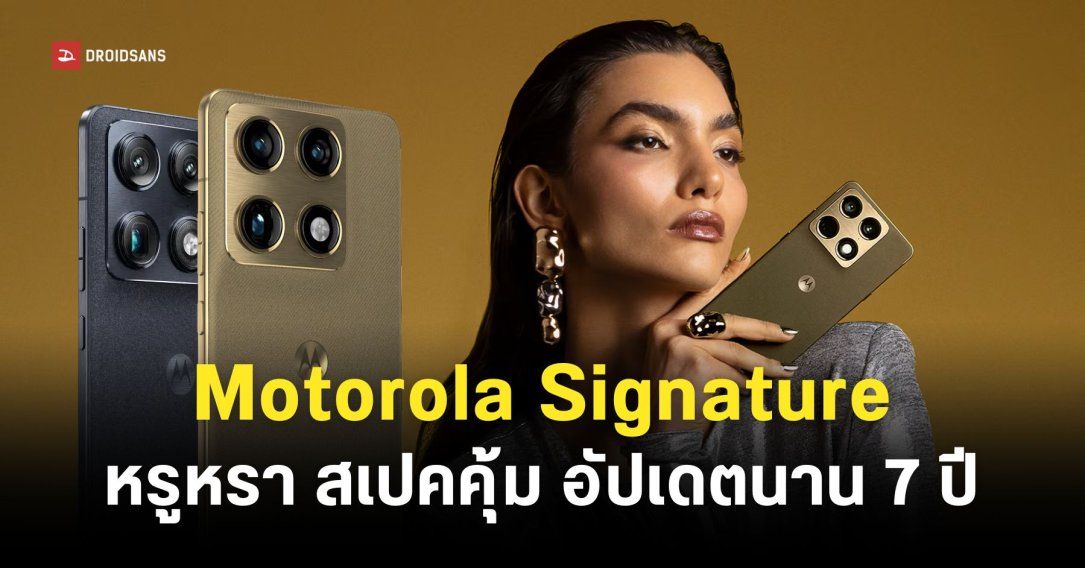 Motorola เปิดตัวสมาร์ตโฟนซีรีส์ใหม่ล่าสุด Motorola Signature ที่มาพร้อมจุดเด่นอย่างดีไซน์บางเบาสุดพรีเมียม ระบบเสียง BOSE และสเปคระดับเรือธงที่ให้การอัปเดต OS นานถึง 7 ปี ในราคาจำหน่ายประมาณ 38,000 บาท