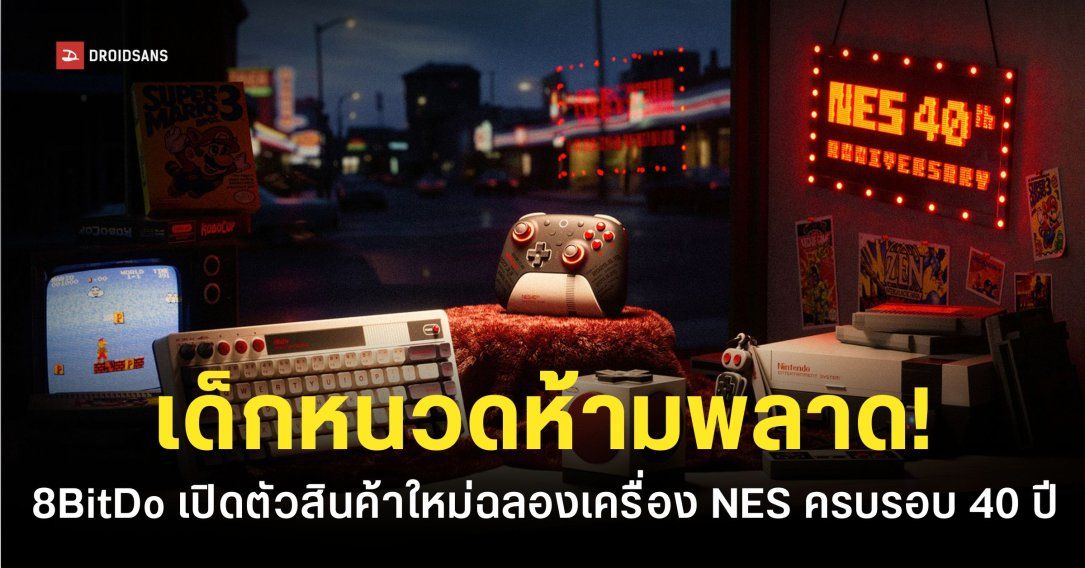8BitDo ฉลองครบรอบ 40 ปี Nintendo Entertainment System (NES) เครื่องเล่นเกมขวัญใจเด็กหนวดด้วยการเปิดตัวสินค้าคอลเลกชันใหม่เอาใจแฟนคลับรุ่นดึก NES40 ที่เป็นการหยิบเอาสินค้าซึ่งเคยวางจำหน่ายมาปรับปรุงให้ดีขึ้น แล้วผสมธีมของ NES เข้าไปให้น่าสะสมมากขึ้นกว่าเดิม