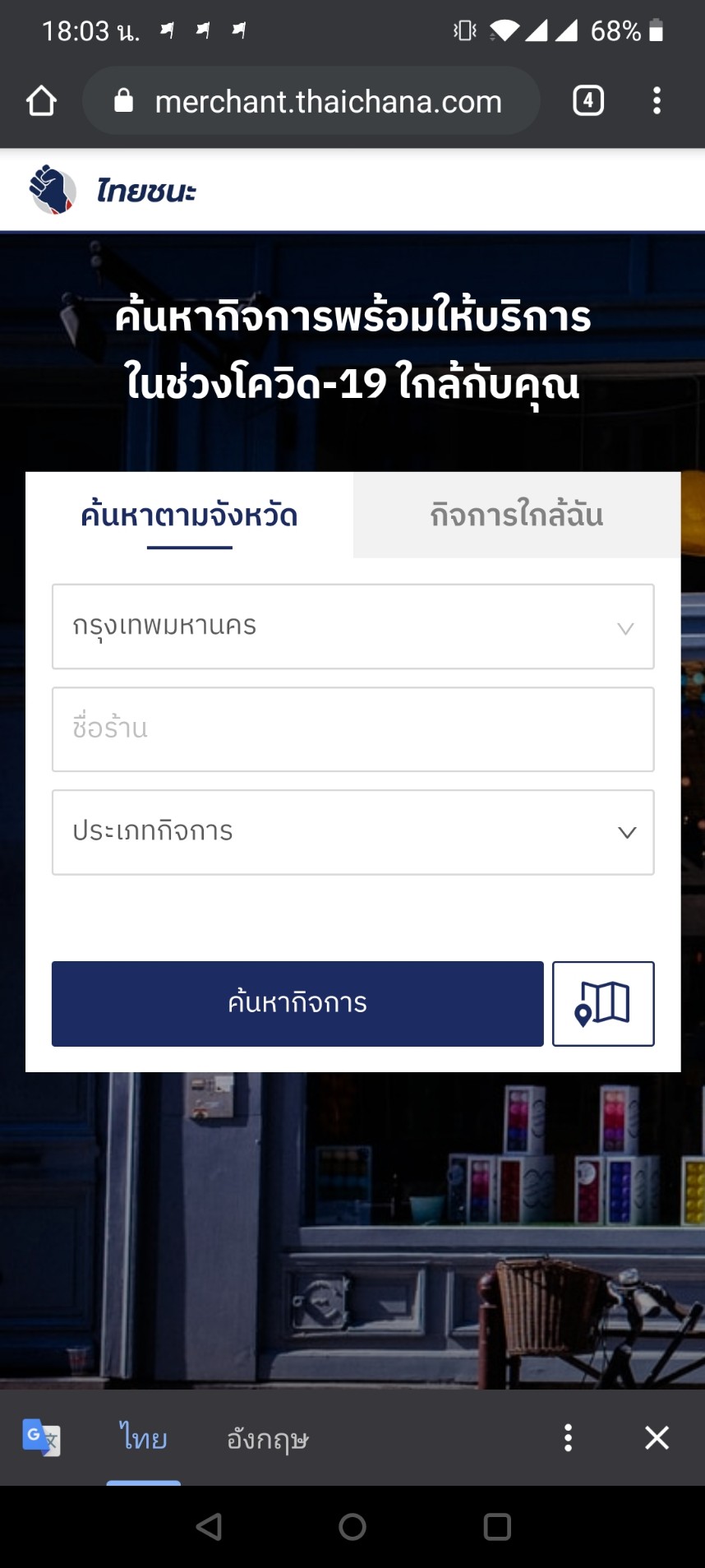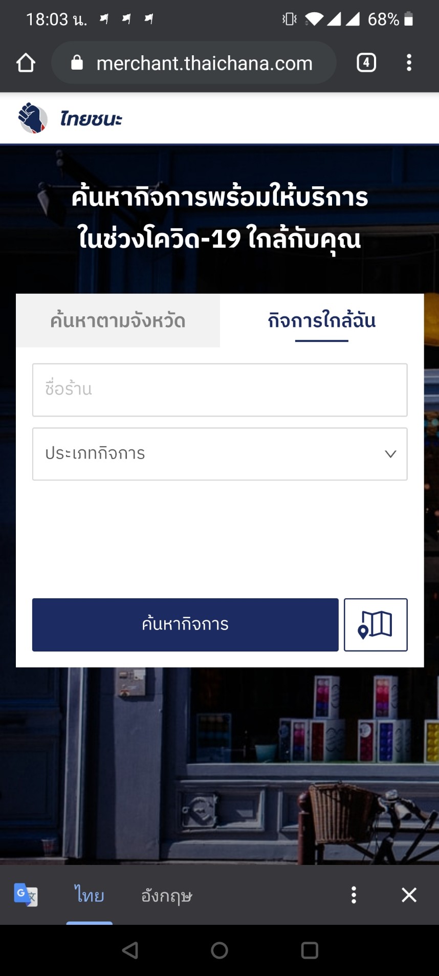 - เข้าที่เว็บไซต์ : https://www.ไทยชนะ.com แล้วกด ค้นหาร้านค้า