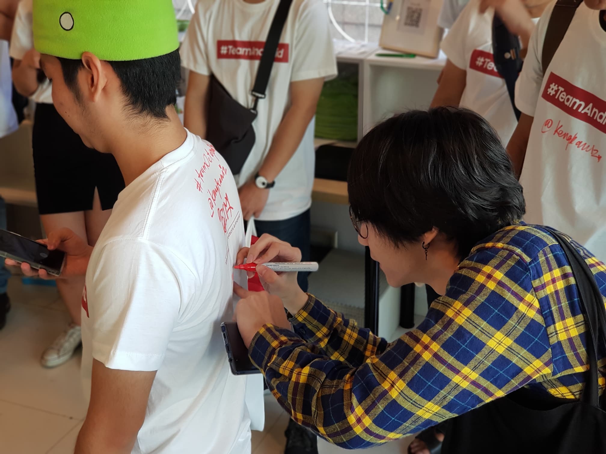 เริ่มจากลงทะเบียน รับเสื้อ และ กระเป๋า รวมถึงเสื้อเป็นรุ่นที่เว้นที่ไว้ให้เขียนข้างหลังได้ด้วย อยากให้ใครเขียนก็ได้เลย แบบนี้ ~~
