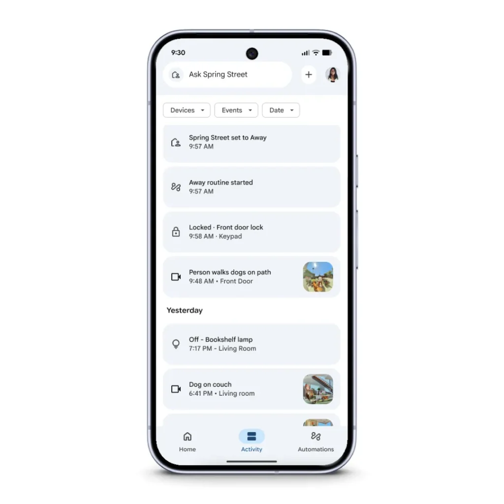 - Activity : หน้าต่างรวมไทม์ไลน์หรือเหตุการณ์ที่เกิดขึ้นภายในบ้านย้อนหลัง แยกหมวดหมู่ตามอุปกรณ์ชิ้นต่างๆ โดยจะมีฟีเจอร์ Home Brief อยู่ในหน้านี้ด้วย