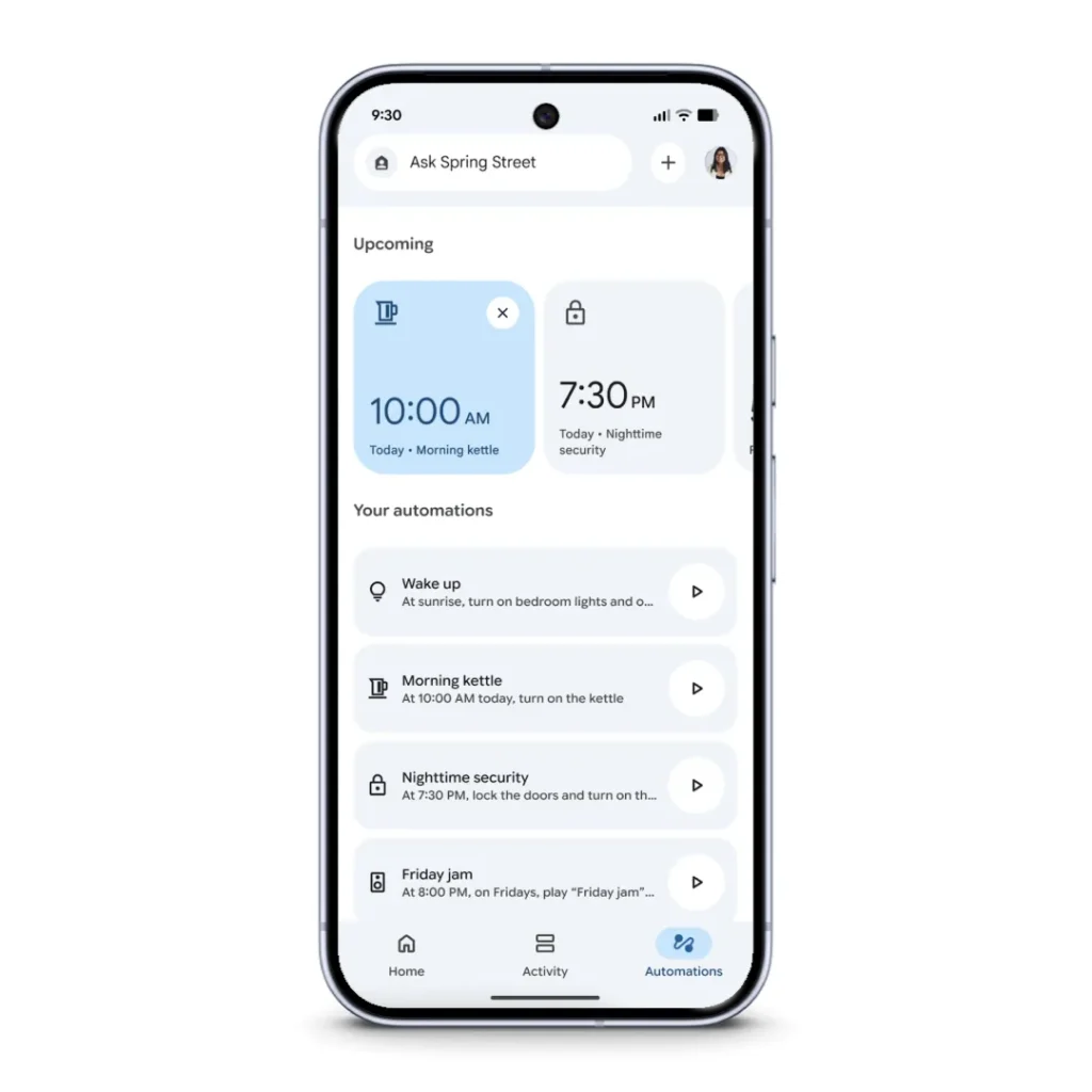 สำหรับคนที่ใช้อุปกรณ์ Nest ไม่จำเป็นจะต้องโหลดแอปแยกอีกต่อไป เพราะสามารถใช้งานผ่าน Google Home ที่รองรับการควบคุมอุปกรณ์ของ Nest ได้อย่างเต็มรูปแบบ ในส่วนของหน้าตาเมนูหรือ UI ก็ได้รับการออกแบบใหม่ให้ใช้งานง่ายขึ้น โดยจัดวางฟีเจอร์ Gemini ไว้ที่จุดกึ่งกลางของแถบเมนูให้เรียกใช้งานได้อย่างสะดวก